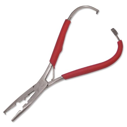 Pick tip opens split rings or split shot, and the integrated ridge crimps split shot in an instant. Attaches to lanyard or vest for handy use. Cutter cuts braided line, mono, leaders or tippet. Opens and locks with one hand. Rust resistant.